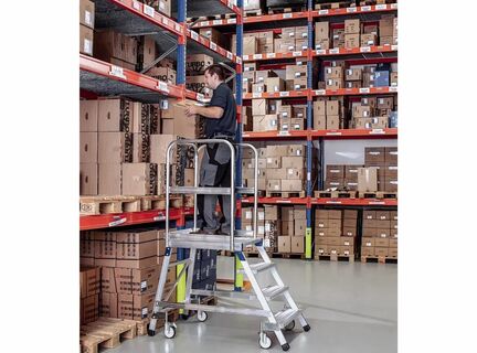 Односторонняя передвижная подмость со ступенями и площадкой из рифленого алюминия ZARGES Z600