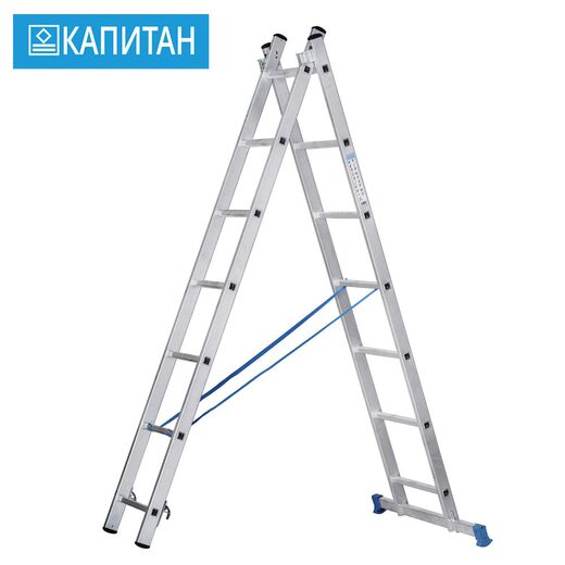 Двухсекционные многоцелевые лестницы с завальцовкой ступеней КАПИТАН