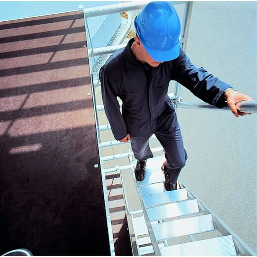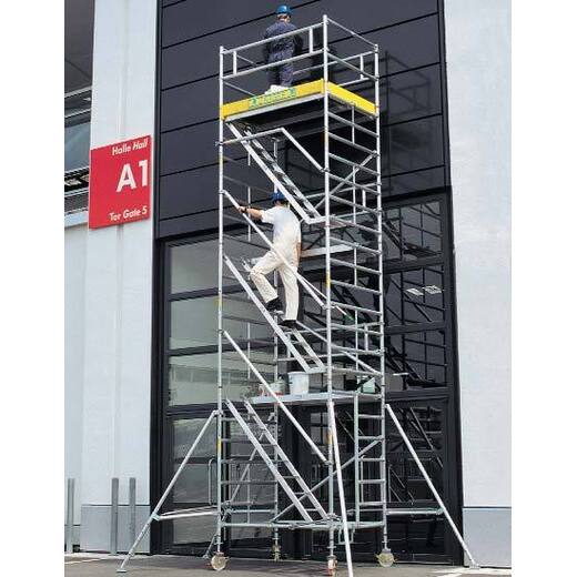 Удобство подъема и спуска благодаря широкой лестнице и устойчивому положению даже при работе на большой высоте.