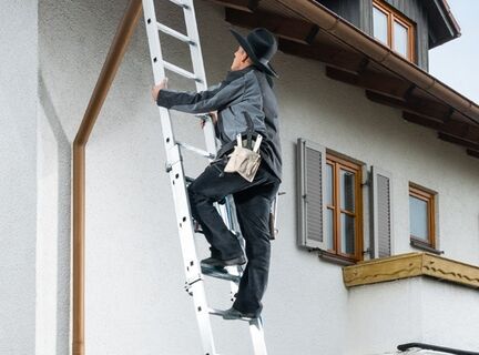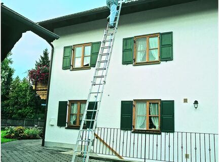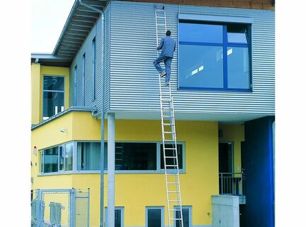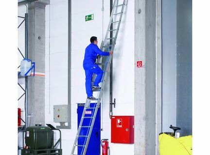 Лестница с простым и удобным регулированием длины оптимально подходит для подъёма на большую высоту.