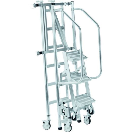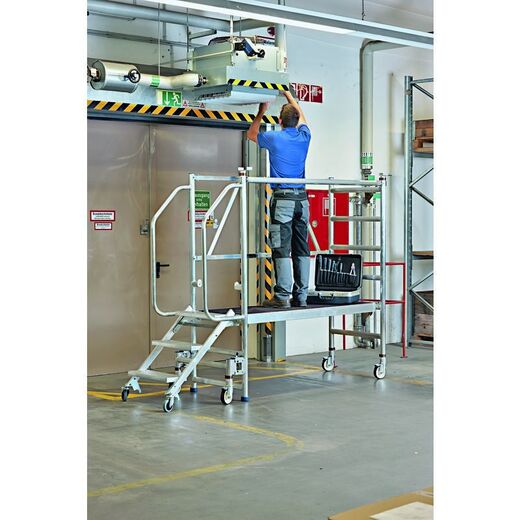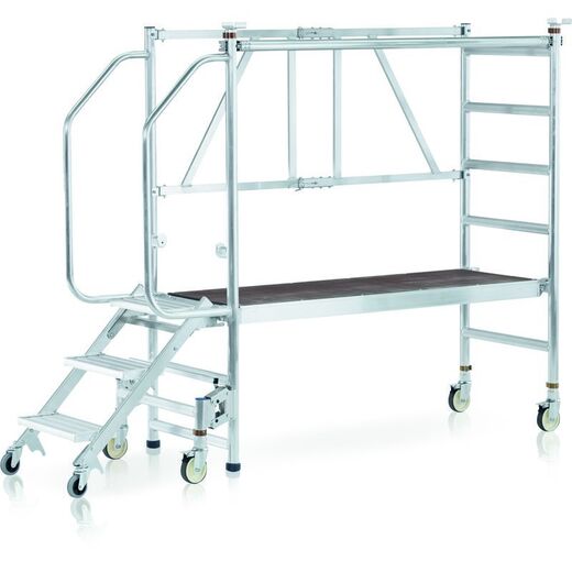 Мобильная и удобная складная рабочая платформа с лестницей и центральным тормозом.
