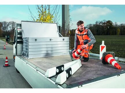Первый ящик ZARGES для грузовой платформы автомобиля – легко снимается благодаря инновационным фиксаторам