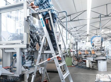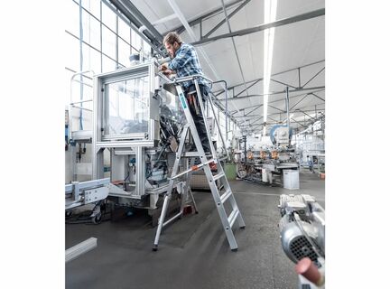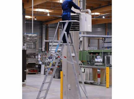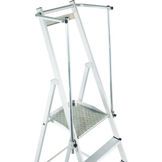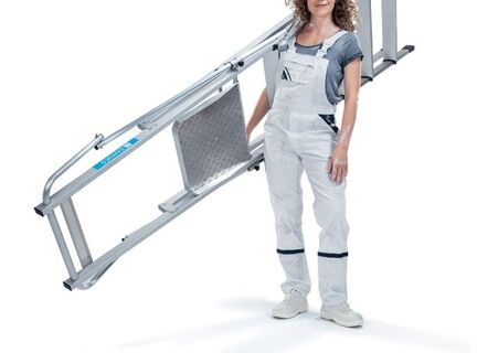 Сверхлегкая лестница с платформой: легкая конструкция, удобство в обращении благодаря складным поручням и просторной площадке